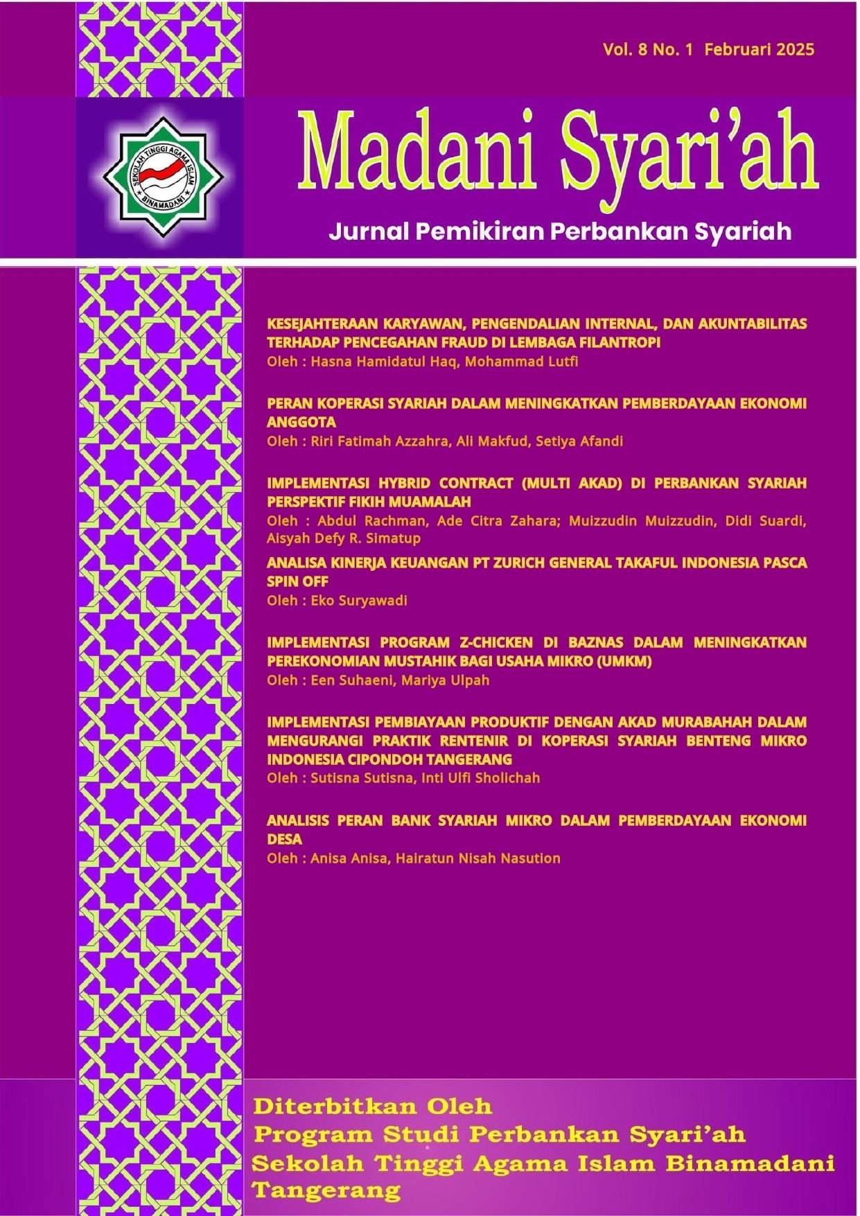 Madani Syari'ah : Jurnal Pemikiran Perbankan Syari'ah